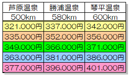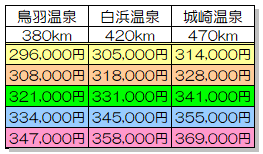 上記はほんの一例です。温泉旅行でご利用頂くことが多い為、主な温泉地を記しています。