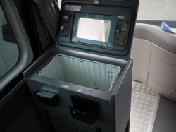 冷蔵庫:バスに乗るとすぐ運転席と反対側についています。小型バスの冷蔵庫は少々小さ目で350mlの缶が1ケース分(24本)ほど入ります。