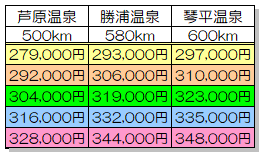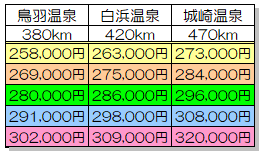 上記はほんの一例です。温泉旅行でご利用頂くことが多い為、主な温泉地を記しています。
