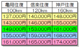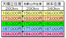 料金算出が時間と距離により複雑になっております。ご了承願います。