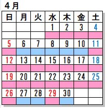 日にちにより色分けしております。詳しくは料金カレンダーをご覧ください。