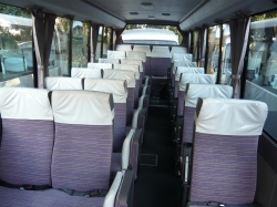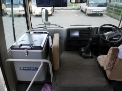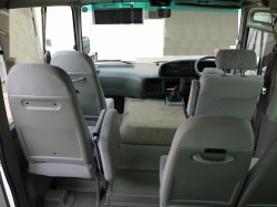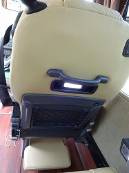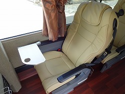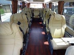 上は送迎用マイクロバスの車内です。座席リクライニングができないタイプが多いです。