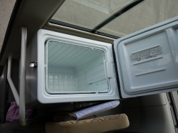 冷蔵庫:ついているバスは助手席の後ろについています。350mlの缶が1ケース分(24本)ほど入ります。