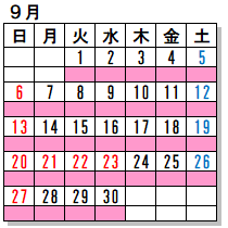 日にちにより色分けしております。詳しくは料金カレンダーをご覧ください。