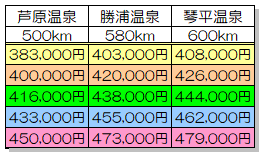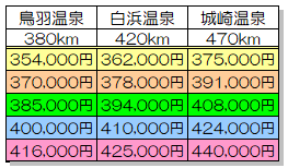 上記はほんの一例です。温泉旅行でご利用頂くことが多い為、主な温泉地を記しています。
