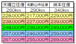 料金算出が時間と距離により複雑になっております。ご了承願います。