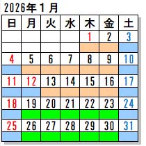 日にちにより色分けしております。詳しくは料金カレンダーをご覧ください。