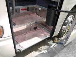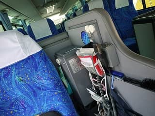 車種によりますが平均的な中型バスで、トランクの大きさは高さ55cm×横幅70cm×奥行き60cm程度のが2つあります。ここにも洗車道具等があらかじめ積んであるのであまり期待しない方がよいでしょう。